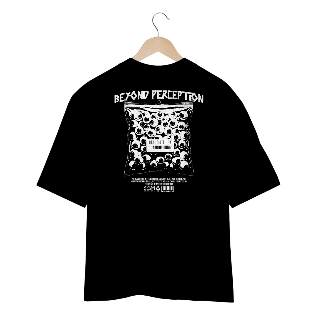 A Camiseta Oversized Beyond Perception é ideal para quem vive intensamente a cena das festas e festivais de música eletrônica. Produzida em malha 100% algodão, com fio 20.1 penteado de alta gramatura (220g/m²), essa peça oferece conforto e durabilidade incomparáveis. Ideal para longas horas de dança e diversão.